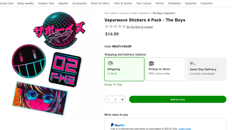 Spencer’s is not a sticker specialist. It is a mall retailer built around tees, décor, gifts, fandom merch, and impulse buys. That matters. When you